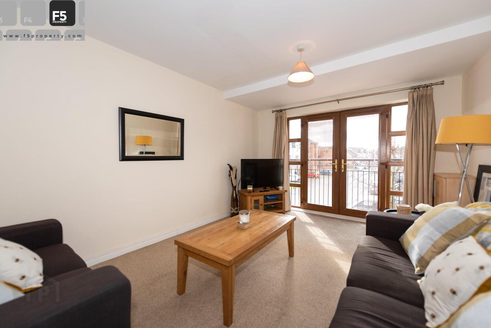 Spacious lounge/dining area, open plan to kitchen with double doors to Juliet balcony. Carpeted with double radiator with thermostatic valve, and 2 and 3 seater sofas included