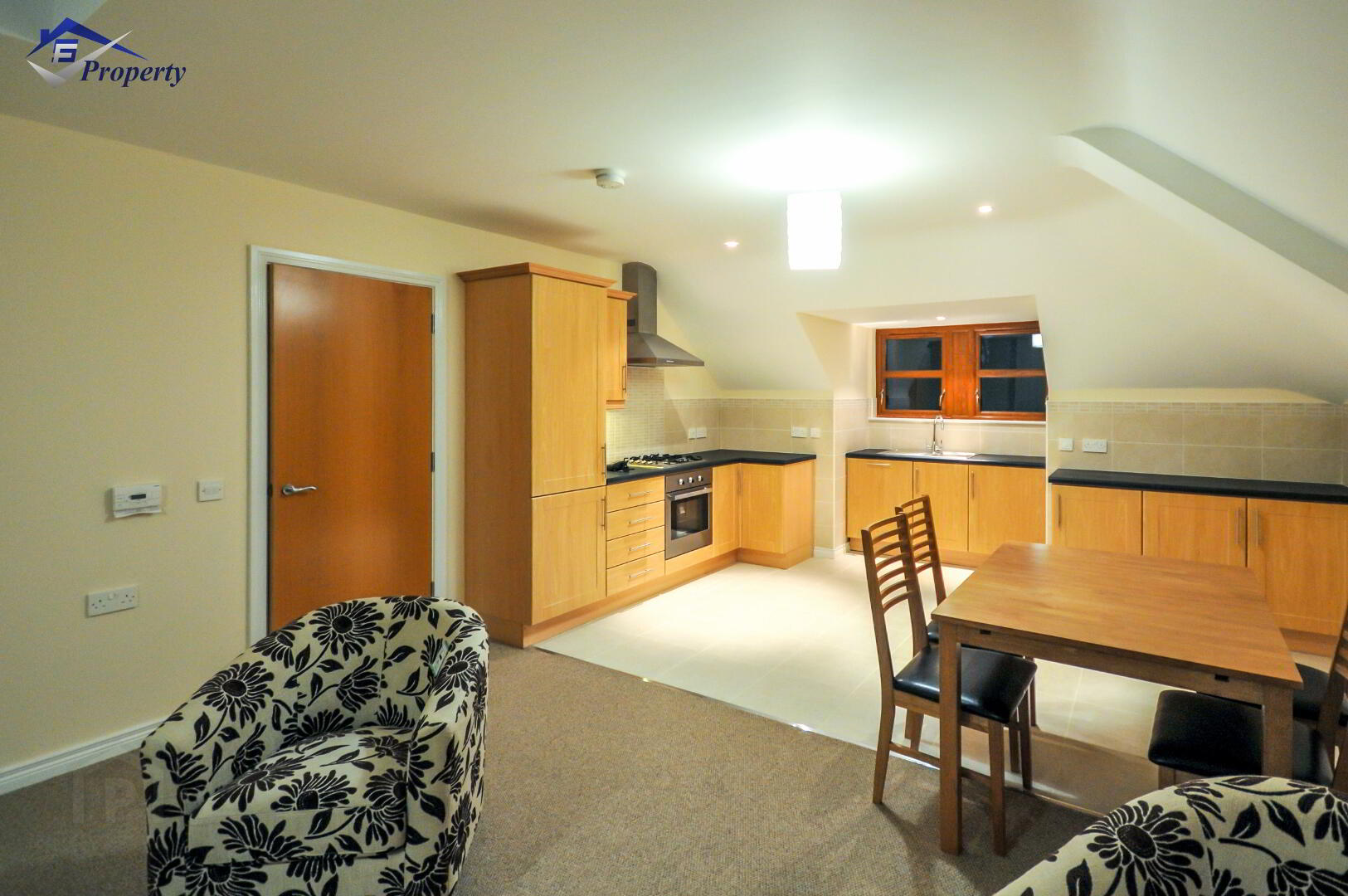 Well equipped kitchen with a good selection of modern appliances including dishwasher and a large fridge freezer. Open plan to lounge/dining room